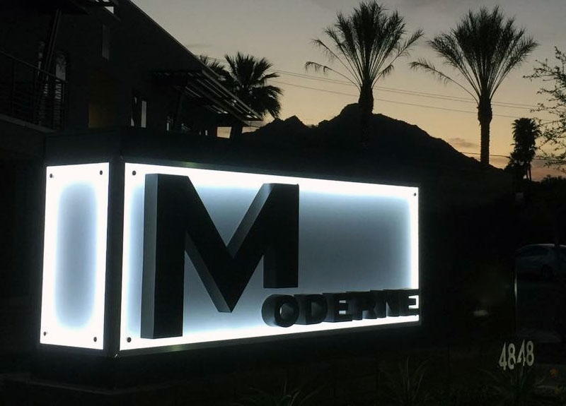 Non-lit channel letters were mounted to edge-lit 3form to create a shadow effect on a glowing panel. The 3form panels were then attached to the main monument structure with standoff bolts to bring the initial concept to life.