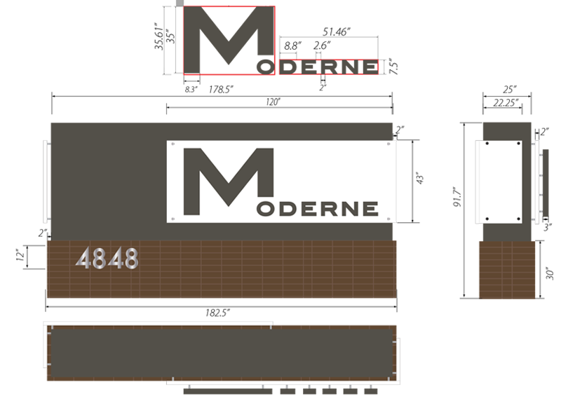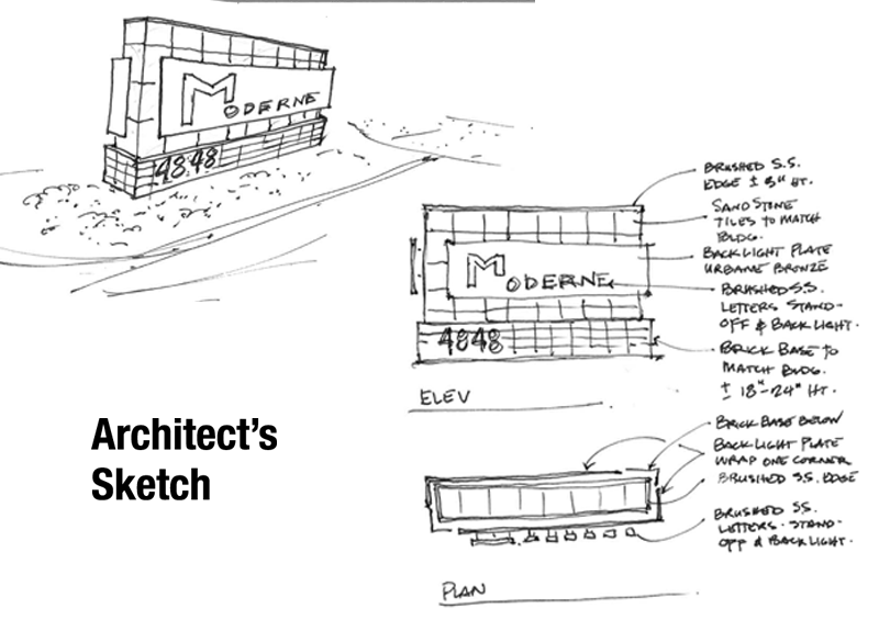 The client's architect presented a concept sketch for a multi-layered sign, however there was no direction for how to build it three-dimensionally.